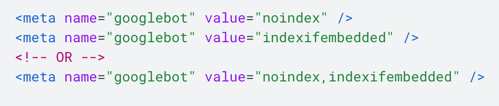 Your indexifembedded tag will look like the above mentioned screenshot and currently Google is only supports the indexifembedded tag.